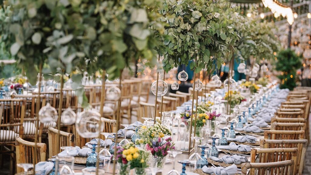 Organizzare un matrimonio è un momento emozionante e, al contempo, impegnativo, e la scelta della location rappresenta uno degli aspetti più cruciali per la riuscita dell’evento. Scegliere di celebrare il proprio matrimonio all’aperto offre numerosi vantaggi, come la bellezza naturale del paesaggio, che può fungere da sfondo incantevole per il giorno più importante della vita. Le location all’aperto, infatti, che spaziano da giardini lussureggianti a spiagge tranquille, offrono un’atmosfera unica e romantica, capace di rendere ogni momento ancora più speciale. Tuttavia, la bellezza di un matrimonio all’aperto non dipende solo dalla location scelta, ma anche dagli allestimenti. Gli allestimenti sono fondamentali per creare l’ambiente desiderato, riflettendo lo stile e la personalità degli sposi. Una cura particolare nella scelta di decorazioni, illuminazione e disposizione degli spazi può trasformare anche la location più semplice in un luogo da sogno. In questo articolo, esploreremo i segreti per realizzare allestimenti indimenticabili, che valorizzino la bellezza naturale del contesto e rendano il matrimonio all’aperto un’esperienza memorabile per tutti gli invitati. Scelta della Location La scelta della location è uno dei passaggi più importanti nella pianificazione di un matrimonio all’aperto e richiede un’attenta considerazione di diversi fattori. Prima di tutto, lo spazio disponibile deve essere adeguato a ospitare il numero di invitati previsto. È fondamentale assicurarsi che ci sia abbastanza spazio per la cerimonia (se si vuole celebrare anche il rito del matrimonio nella location prescelta), il ricevimento e altre attività, come balli o giochi, senza creare un senso di affollamento. In secondo luogo, l’accessibilità è un aspetto cruciale da tenere in mente. La location dovrebbe essere facilmente raggiungibile per tutti gli invitati, compresi quelli con mobilità ridotta. È utile considerare la disponibilità di parcheggio e la vicinanza a strutture di trasporto pubblico, in modo da garantire che tutti possano arrivare senza difficoltà. Infine, la vista e il panorama offerti dalla location possono fare la differenza nell’atmosfera del matrimonio. Scegliere un luogo con un bel paesaggio, come un giardino fiorito, una vista panoramica su un lago o una spiaggia, non solo arricchisce l’esperienza visiva, ma offre anche opportunità per scattare fotografie indimenticabili. Prendere in considerazione questi fattori contribuirà a garantire che la location scelta sia perfetta per un matrimonio all’aperto da sogno. Un ottimo esempio di location ideale per l’organizzazione di un matrimonio all’aperto è, indubbiamente, il Casale dei Mascioni. Immaginate un “Antico Casale Ottocentesco”, una dimora storica che incarna il fascino del passato, immersa nella natura e restaurata con cura per preservare il suo autentico splendore. Al Casale dei Mascioni la storia si intreccia con la bellezza naturale, offrendo un ambiente incantevole per celebrare il vostro matrimonio all’aperto. La storia di questo casale è legata alla prestigiosa famiglia Liguori, una delle più rinomate di Terra di Lavoro, che per oltre un secolo ha dedicato il proprio impegno alla produzione e trasformazione di pregiati tessuti in seta di S. Leucio. Questo know-how artigianale è una risorsa preziosa, e ogni membro dello staff del Casale dei Mascioni è pronto a mettere a disposizione degli ospiti la propria esperienza, creando un’atmosfera magica e accogliente. Diverse sono le opzioni per chi al Casale dei Mascioni intende festeggiare il proprio matrimonio all’aperto. Il Casale dispone infatti di vari spazi, ognuno dotato di caratteristiche e fascino propri. Parliamo prima di tutto delle terrazze, che offrono un panorama da sogno: la Terrazza della Dea Dormiente e la Terrazza del Campanile, spazi esclusivi dedicati agli sposi, parte integrante del loro sogno d’amore. La Terrazza della Dea Dormiente, con il suo accogliente lounge bar, regala una vista mozzafiato sul Massiccio del Taburno, il cui profilo, visto dal Casale, ricorda una donna supina, da cui deriva il suggestivo nome di Dea Dormiente del Sannio. Questo scenario incantevole aggiunge un tocco di magia al giorno delle nozze. Dall’altra parte, la Terrazza del Campanile si trasforma nel cuore pulsante dell’intrattenimento, dove gli sposi e gli invitati possono lasciarsi andare e divertirsi. Qui, tra musica, balli e drink, si crea un’atmosfera vivace e festosa, in cui ogni momento diventa un ricordo indimenticabile. Passiamo al Belvedere degli Angeli, che offre un’esperienza di contatto diretto con la natura, in uno spazio immenso allestito a prato che domina la vallata del Taburno. Qui, le infinite sfumature di verde si fondono con lo sguardo che si perde sulle colline dell’Alto Casertano, dove filari ordinati di viti si alternano a oliveti secolari, paesaggi limpidi e rasserenanti che sembrano dipinti. Questo panorama mozzafiato costituisce il contesto ideale per un matrimonio all’aperto, dove ogni dettaglio contribuisce a creare un’atmosfera incantevole. Per chi desidera festeggiare e cenare all’aperto, anche il Bosco rappresenta un angolo tranquillo del Borgo, dove è possibile gustare cibi e bevande mentre il crepuscolo avvolge il paesaggio rurale e incontaminato. Immaginate di cenare sotto le stelle, attorno a un tavolo imperiale illuminato da un soffitto di luci all’italiana. Tutto ciò è possibile nel Bosco del Casale dei Mascioni, un’area accogliente con una terrazza ampia ai piedi di un bosco secolare di querce, circondata da spazi verdi e arredata con comodi mobili. Qui, potrete godere di una cena all’aperto, brindare all’amore e festeggiare la vostra unione in un’atmosfera magica, con balli e festeggiamenti sotto un cielo stellato. Ma non finisce qui: il Parco del Casale è motivo di orgoglio, regalando scorci incantati e profumi intensi in ogni stagione. Le coppie poss